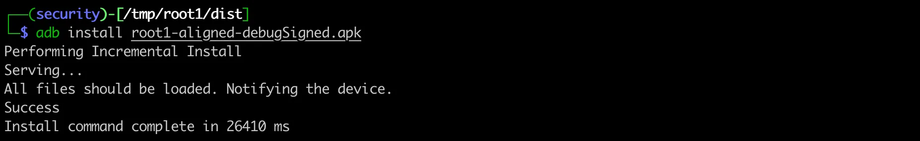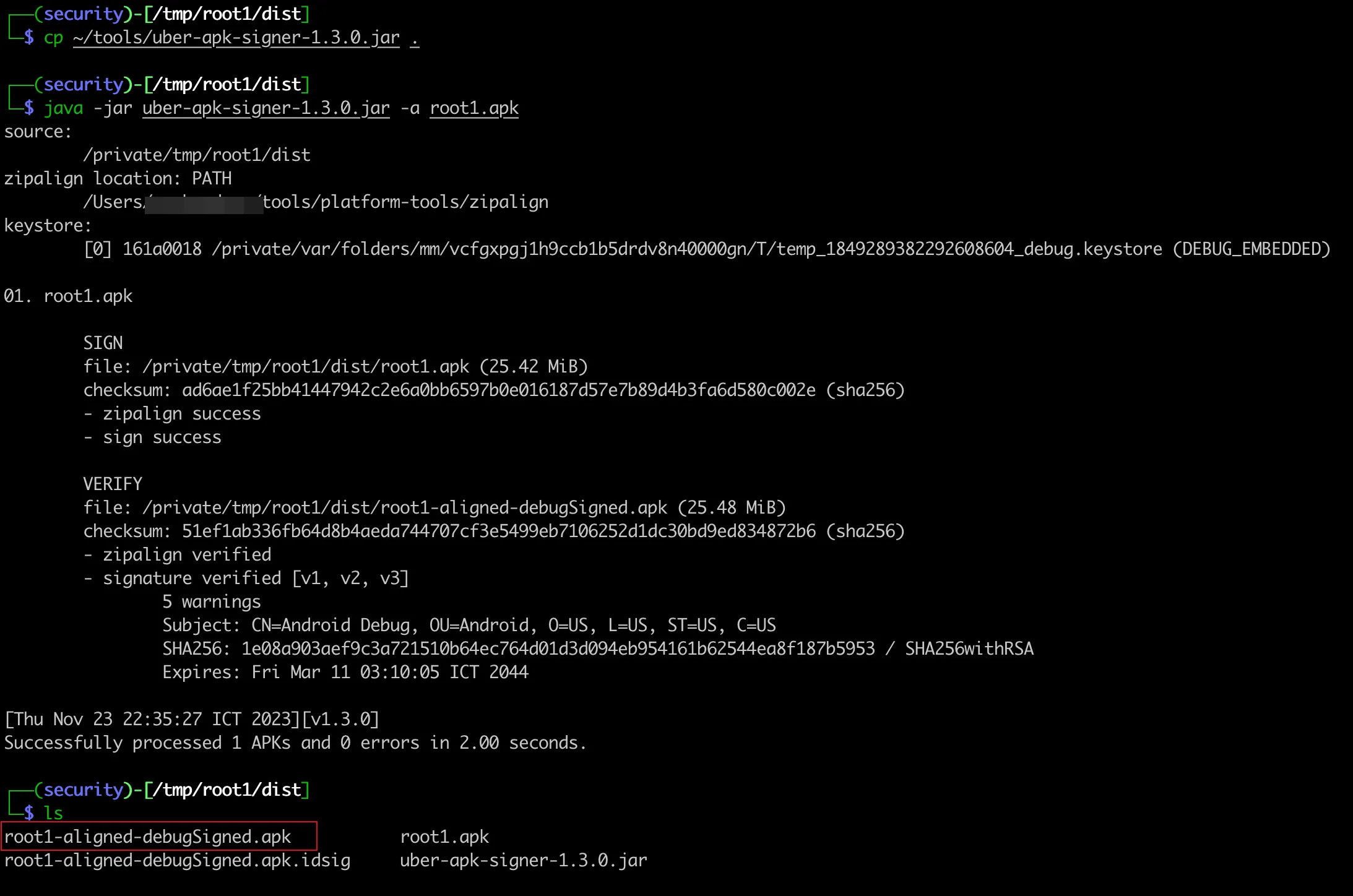 java -jar uber-apk-signer-1.3.0.jar -a root1.apk